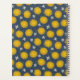 This design features hand-sketched green leaves and yellow and white flowers on a denim blue background.