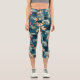 Midnight Garden: Blue Floral Patchwork Pattern Capri Leggings