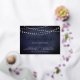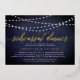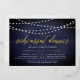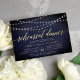 Our elegant rehearsal dinner or cocktail party invitations in chic midnight blue and white feature a richly textured midnight blue background with strings of white lights across the top, and "rehearsal dinner" in chic gold foil calligraphy script typography. Personalise with your ceremony rehearsal and rehearsal dinner details beneath. Includes space for the rehearsal timing and church or venue address. A chic design in dark navy and white for modern couples and elegant events.
