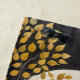 This whimsical and serene artwork features a striking black cat as the central figure, sitting poised and majestic in a stylized, autumnal landscape. Behind the cat, a massive, luminous full moon dominates the scene, casting a gentle glow over rolling hills and a dark, starry sky. The surrounding trees are adorned with vibrant, stylized leaves in a warm palette of yellow, gold, and burnt orange, contrasting beautifully with the cool tones of the background. The piece blends a sense of magical realism with a folk art aesthetic, creating a captivating and tranquil scene filled with mystical charm.