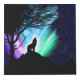 The Aurora Borealis. A wolf howling in the silence of the night. The scene is both dramatic and beautiful making it a magical piece of artwork.