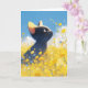 This enchanting greeting card features a curious black cat gazing up at a vibrant field of yellow and blue flowers against a clear blue sky. The whimsical illustration combines the playful innocence of a kitten with the beauty of nature, capturing the spirit of a sunny, flower-filled meadow. Perfect for cat lovers, nature enthusiasts, and anyone who appreciates art with a touch of magic, this card makes an ideal choice for birthdays, thank-you notes, or simply bringing a smile to someone’s day. The vibrant colours and heartwarming scene create a cheerful and uplifting greeting card suitable for any occasion.