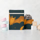 This seamless Halloween wrapping paper design features cheerful orange bats fluttering across a deep midnight background, accented by crescent moons and scattered glowing dots. The warm orange tones contrast beautifully with the dark backdrop, creating a playful yet spooky aesthetic. Perfect for gift wrapping, party décor, or seasonal crafts, this pattern captures the whimsical charm of Halloween night with a balance of mystery and fun.