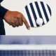 Midnight Navy Blue and White Stripes Ping Pong Paddle