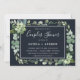This couples shower invitation features painted watercolor succulent, eucalyptus, and botanical green leaves with a rectangle frame in midnight navy blue background. Matching items are also available.