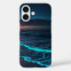 Enchanting nighttime ocean scene with glowing plankton and shimmering waves.