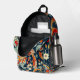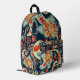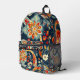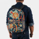 This backpack, adorned with the "Midnight Paisley" design, is a true embodiment of elegance and sophistication. The pattern is a modern take on the classic paisley, reimagined with a deep navy backdrop that sets the stage for the dynamic dance of florals and ornamental motifs. Bursts of crimson, burnt orange, and serene blues come together in a harmonious yet striking palette, reminiscent of a starlit garden in full bloom.