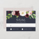 Elegant watercolor floral RSVP card features a cluster of blush pink, burgundy marsala and ivory blossoms accented with lush green botanical foliage. Personalise with your desired RSVP date as well as custom accept and decline wording on a rich navy blue background. Designed to match our Blush Romance and Midnight Romance wedding and special event collection.
