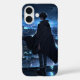 High-quality anime phone case featuring a mysterious boy on a rooftop at night. Glowing city lights and a full moon create a dramatic and dynamic scene perfect for anime fans.