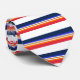 Stand out and look classy at the same time with this blue, red, orange, and copper tie. Wear it to your next tailgating event!