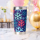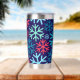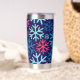 Sip in seasonal style with the **Midnight Snowfall Thermal Tumbler**—a bold and festive companion for all your winter adventures. Featuring oversized snowflakes in icy blue, teal, and holiday red over a rich navy background, this insulated tumbler keeps your drinks hot or cold on the go. Whether you're braving the cold with coffee or staying refreshed with iced tea, the secure lid and sleek design make it ideal for holiday errands, cosy commutes, or gifting to your favourite snowflake fan.
