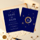 Announce your special day with this enchanting Midnight Stars Navy Blue Wedding Save the Date Card. Set against a deep navy blue background, this design features delicate, shimmering stars that capture the romance of a starlit evening. The elegant font and sophisticated layout make this save-the-date card ideal for weddings with a celestial, night-sky theme. Beautiful Monogram with Sun and Moon on the Back. Perfect for couples looking to add a touch of magic and elegance to their wedding stationery.