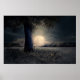 This is an atmospheric picture of the moon low down in the sky viewed from under a tree at midnight. Lose yourself in a different world just staring into this print.
