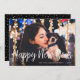 Missed the deadline for Christmas cards? Share New Year's wishes instead with this simple and elegant photo card. Design features your favourite full bleed horizontal / landscape orientated photo with "Happy New Year" in handwritten style casual white script typography. Personalise with your custom greeting and the year at the bottom. Cards reverse to a festive black and white confetti pattern.