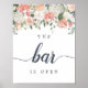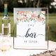 Midsummer Floral "The Bar is Open" Wedding Sign