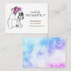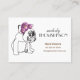 Minimalist , stylish and original matte paper professional square business card.Black and white french bulldog art drawing and roses photo. Blue and purple background - marble photo.