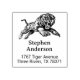 Striking return address stamp for tiger lovers. Decorated with a roaring tiger illustration symbolizing strength and fearlessness. It's personalized with a custom name and mailing address which are easy to customize to create your own stationary.