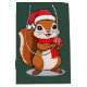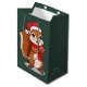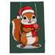 This adorable design features a brown squirrel with a red and white Christmas cap and a red scarf with white fringes. The squirrel stands on its back legs and holds a red Christmas ball decorated with white snowflake patterns. This design is perfect for Christmas decorations or illustrations, bringing a touch of charm and festivity to the holiday season.