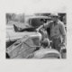 Migrant agricultural worker getting his car ready to move on in search for work, Berrien County, Michigan. Great old photo with suitcase strapped to front fender of antique car. FSA photo taken in 1940 by photographer John Vachon.