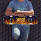 Mike skateboard fire and flames design. Hot skateboard designs. Cool skateboard designs. Custom skateboards. Perfect gift idea for loved ones named Mike. Very hot gift idea. Learn to customise further at rateitart.com/help Visit my zazzle store at zazzle.com/skatersollie* More names are being added everyday. If you don't see your name or need custom flaming text email me at support@skatersollie.com