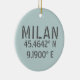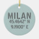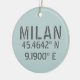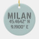 Milan Italy Latitude and Longitude Ceramic Tree Decoration