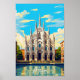 Milan Italy vintage travel place illustration Poster