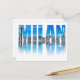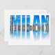 Milan text composed of Milan skyline with text reflection in water. View from Milan Cathedral roof. Milan skyline with modern skyscrapers in Porto Nuovo financial district.