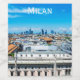 Painting of Milan skyline with modern skyscrapers in Porto Nuovo financial district and stone statues of Duomo Cathedral...