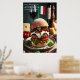 Discover a Milanese treasure with this delectable Italian Truffle Burger. A juicy beef patty infused with fragrant black truffle oil is layered with creamy fresh mozzarella, sweet sun-dried tomatoes, and vibrant basil pesto, all stacked high on a crusty ciabatta roll. A small Italian flag adds a touch of Italian style, while aged parmesan and a glass of crisp white wine provide a fitting backdrop, making this a true Italian culinary experience.