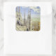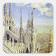 Close-up image from a vintage Italian travel poster for Milano, showing the Gothic roofline of Milan Cathedral.