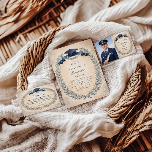 Celebrate an incredible milestone with this Air Force–inspired graduation design, created to honor dedication, discipline, and achievement. Featuring aviation elements, patriotic details, and a refined ceremonial layout, this invitation is perfect for Air Force graduates, military families, and proud supporters. Fully customizable with names, dates, and event details, it’s a timeless way to mark a moment of service, success, and new beginnings.