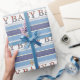 Adorable military or patriotic themed baby gift wrapping paper! This cute paper has the word BABY in patriotic colours and stars and stripes, with a bow on a blue background. Great gift paper for a baby shower or baby gift!