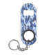 This bottle key ring opener is shown with a military blue camo print.