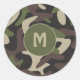 Military Camouflage Green Brown Pattern Monogram Classic Round Sticker