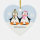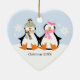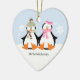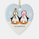 Adorable couple of penguins in the snow.
