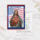 Remember your loved ones with this beautiful Catholic American military memorial prayer card of the Sacred Heart of Jesus and the American Flag.