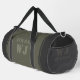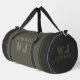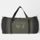 Sleek and customizable gym duffel bag design with minimalist text reading "Gym Bag" and personalized name option. The bag features a stylish combination of military green and dark gray, making it the perfect gift for a friend who appreciates personalized items.