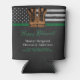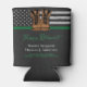 Thin Green Line Military Retirement Party can cooler. Celebrate years of dedicated service, your military retirement and host friends and family to your military party with this rustic Thin Green Line Flag with Leather Army Boots Military Retirement can cooler. USA American flag design in Police Flag colours, worn black green white on faux black leather. This military retirement collection is also perfect for military graduation, soldier going away part, deployments and homecoming, change venue in personalisation. See our collection for matching military retirement invitations, gifts, military retirement party favours, and supplies. COPYRIGHT © 2021 Judy Burrows, Black Dog Art - All Rights Reserved. Military Retirement Leather Boots Green Line Army Can Cooler