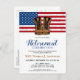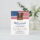 American Flag Military Retirement Invitations - Celebrate years of dedicated service, and invite friends and family to your military retirement party with this American Flag Retirement Invitation - USA American flag design with gold combat boots design. This military retirement invitation is also perfect for military graduation invitations, going away deployment, and homecoming, change venue in personalization. See our collection for matching military retirement gifts, graduation gifts, party favors, and supplies. COPYRIGHT © 2021 Judy Burrows, Black Dog Art - All Rights Reserved. Military Retirement Party Army Boots American Flag Invitation Postcard