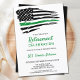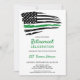 Thin Green Line Military Retirement Invitations or Military Going Away Party Invitations. This Thin Green Line Army party invitations are perfect for a military retirement, military deployments send off, military welcome home celebration, military graduation, and soldiers going away party. Thin Green Line Flag represents all military, army, border protection, border patrol, conservation officer, park ranger, game warden, federal law enforcement. Personalise this military flag invitation with your soldiers event, name, and party details.