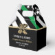 This retirement design features a military flag with black and white stripes, and a thin green line stripe as well. The gold army boots sits above the name of the retiring sergeant, captain, soldier, lieutenant or general.
