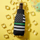 Show your support with this black and white thin green line American flag bottle cooler. Personalise by replacing the sample name with your own name for a one of a kind gift for those in the military, park rangers, conservation officers and border patrol. Great for days at the beach, picnics, and parties.