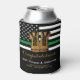 Thin Green Line Military Retirement Party Can Coolers. Celebrate years of dedicated service, your military retirement and host friends and family to your military party with this modern Thin Green Line Flag with Gold Army Boots Military Retirement Can coolers. USA American flag design in Military Flag colours, modern black green white and gold design. This military retirement party napkins is also perfect for military graduation, soldier going away part, deployments and homecoming, change venue in personalisation. See our collection for matching military retirement invitations, gifts, military retirement party favours, and supplies. COPYRIGHT © 2021 Judy Burrows, Black Dog Art - All Rights Reserved. Military Thin Green Line Personalised Retirement Can Cooler