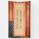 A vintage-inspired distressed American Flag Welcome Home Banner. Add their name and rank—nostalgic 70s image of the USA flag. You can change the text/font style/color. Great for anyone returning home.