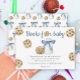 A Little Cookie Is On The Way! Watercolor baby shower party. Watercolor cookies with chocolate and bottle milk with blue bow.