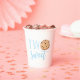 Milk and cookies 2nd birthday paper cups blue Two Sweet with chocolate chip cookie.