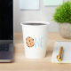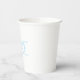 Milk and cookies first birthday paper cups with blue One and chocolate chip cookie.