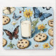 Milk and Cookies with Flowers and Butterflies Blue Mouse Mat