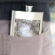 The product is a good size and came exactly as it was pictured. The lid is not attached to the flask, which could be dangerous on drunken nights... The print came out surprisingly well and looks very sharp. Would definitely recommend.