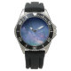 Has heft and feel of expensive stainless steel quartz wrist watches. Solid construction and good looks. Although it had a really top quality rubber strap, I substituted a stainless steel "Shark" style mesh strap, which I think is the most comfortable strap available. Perfect. True colors of original image. Clear, crisp image precisely aligned and spaced.